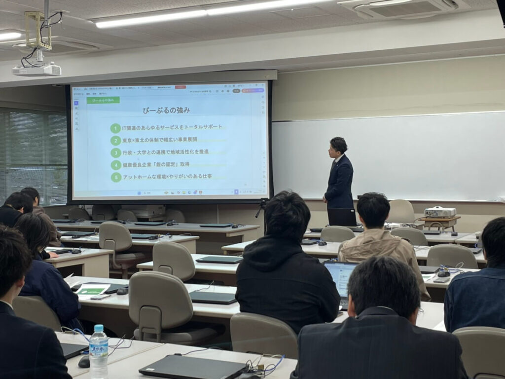 青森県が主催する、大学や専門学校を訪問して、青森県内のIT企業の若手社員、OB社員が、講話をするものです。令和9年3月卒業予定者を主な対象としています。